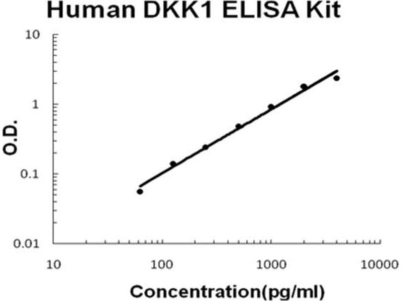 DKK1 Reaktivität: Human Colorimetric Sandwich ELISA 250-5000 pg/mL Cell Culture Supernatant, Plasma, Serum, Tissue Homogenate