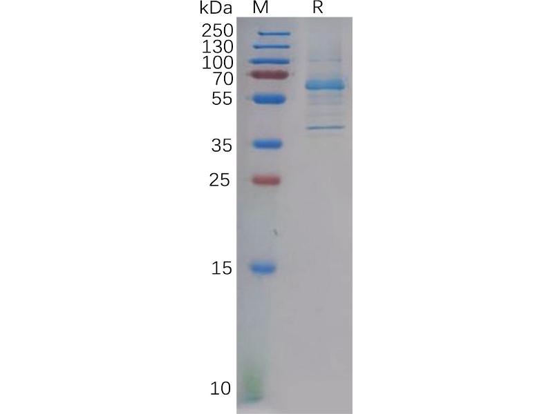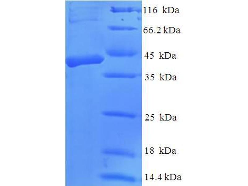 The purity of the protein is greater than 95 % as determined by SDS-PAGE and Coomassie blue staining.