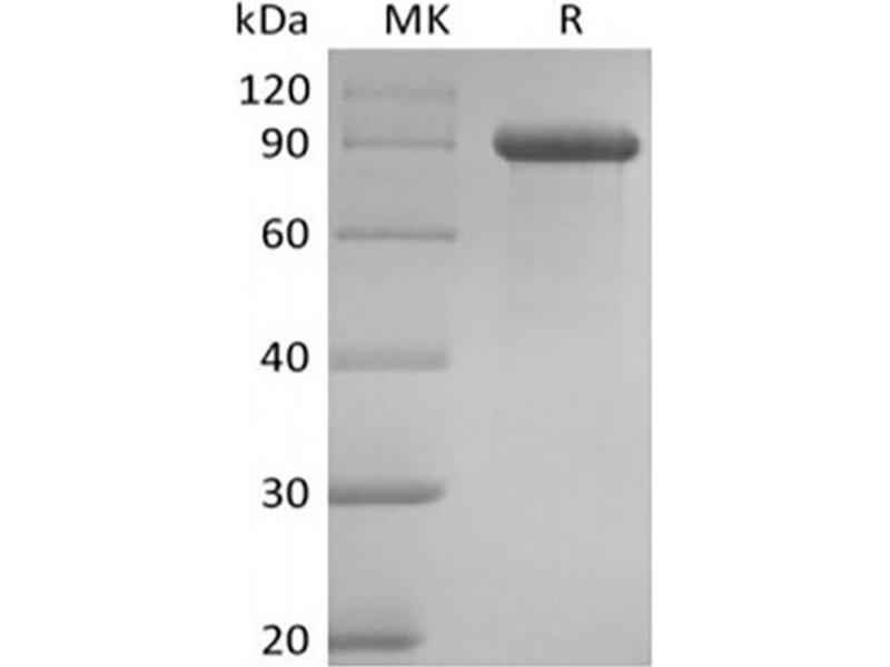 The purity of the protein is greater than 85 % as determined by SDS-PAGE and Coomassie blue staining.