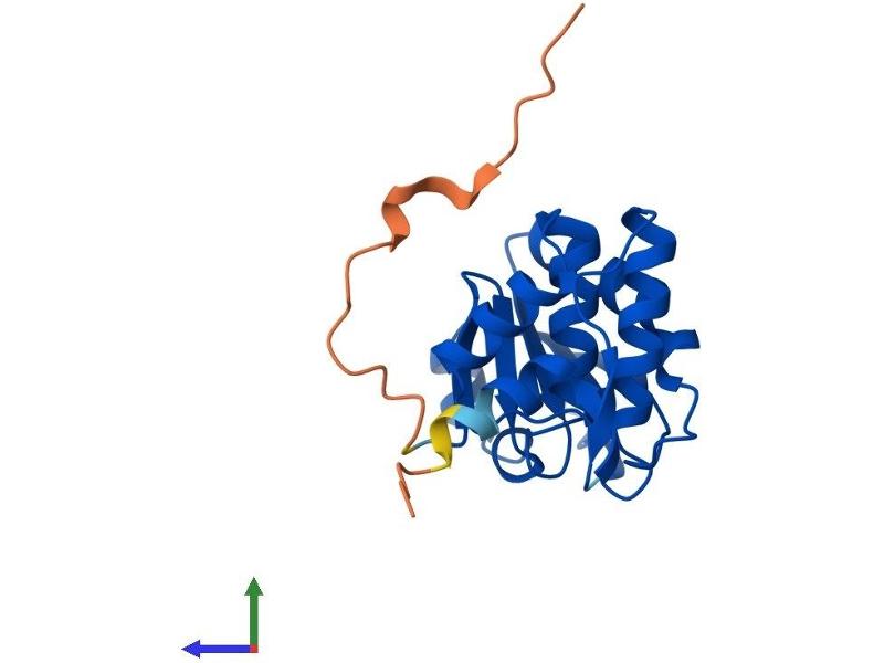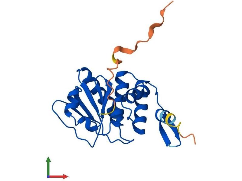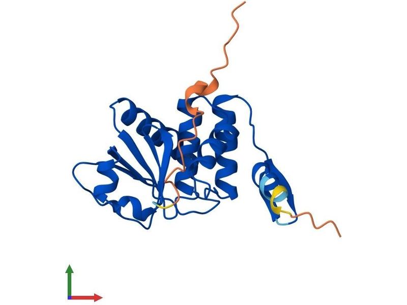 Dual-specificity phosphatases (DUSPs) constitute a large heterogeneous subgroup of the type I cysteine-based protein-tyrosine phosphatase superfamily. DUSPs are characterized by their ability to dephosphorylate both tyrosine and serine/threonine residues. They have been implicated as major modulators of critical signaling pathways. DUSP14 contains the consensus DUSP C-terminal catalytic domain but lacks the N-terminal CH2 domain found in the MKP (mitogen-activated protein kinase phosphatase) class of DUSPs (see MIM 600714) (summary by Patterson et al., 2009 [PubMed 19228121]).[supplied by OMIM, Dec 2009].