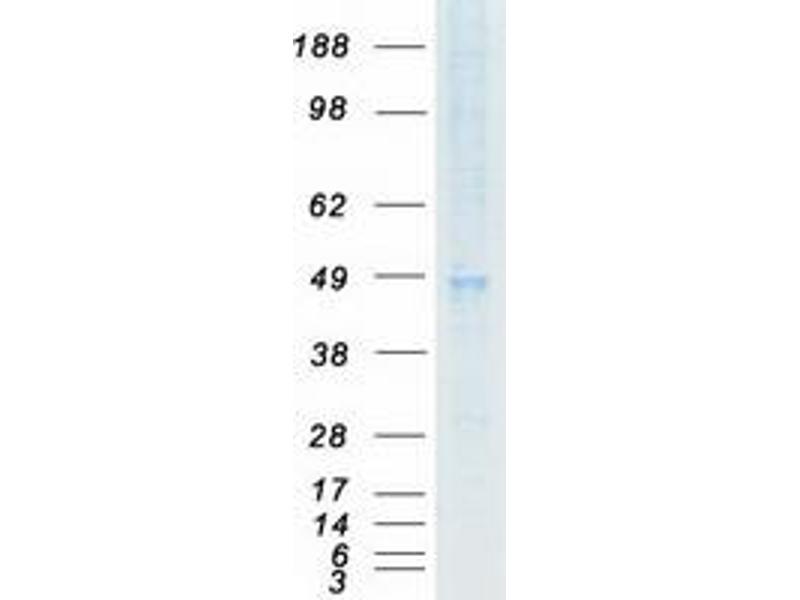 The purity of the protein is greater than 95 % as determined by SDS-PAGE and Coomassie blue staining.