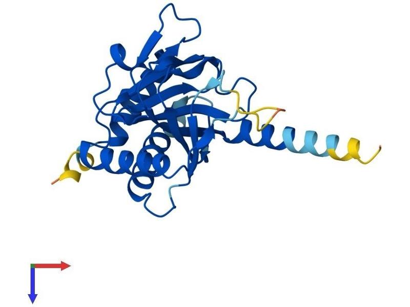 Cellular oxygen sensor that catalyzes, under normoxic conditions, the post-translational formation of 4-hydroxyproline in hypoxia-inducible factor (HIF) alpha proteins. Hydroxylates a specific proline found in each of the oxygen-dependent degradation (ODD) domains (N-terminal, NODD, and C-terminal, CODD) of HIF1A. Also hydroxylates HIF2A. Has a preference for the CODD site for both HIF1A and HIF2A. Hydroxylation on the NODD site by EGLN3 appears to require prior hydroxylation on the CODD site. Hydroxylated HIFs are then targeted for proteasomal degradation via the von Hippel-Lindau ubiquitination complex. Under hypoxic conditions, the hydroxylation reaction is attenuated allowing HIFs to escape degradation resulting in their translocation to the nucleus, heterodimerization with HIF1B, and increased expression of hypoxy-inducible genes. ELGN3 is the most important isozyme in limiting physiological activation of HIFs (particularly HIF2A) in hypoxia. Also hydroxylates PKM2 in hypoxia, limiting glycolysis. Under normoxia, hydroxylates and regulates the stability of ADRB2. Regulator of cardiomyocyte and neuronal apoptosis. In cardiomyocytes, inhibits the anti-apoptotic effect of BCL2 by disrupting the BAX-BCL2 complex. In neurones, has a NGF-induced proapoptotic effect, probably through regulating CASP3 activity. Also essential for hypoxic regulation of neutrophilic inflammation.