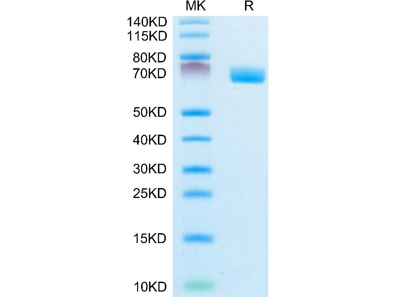 The purity of the protein is greater than 85 % as determined by SDS-PAGE and Coomassie blue staining.