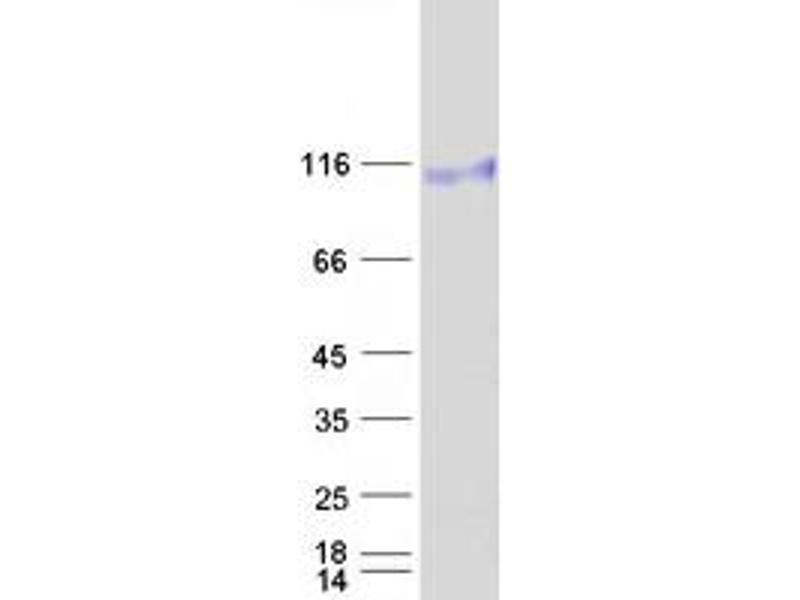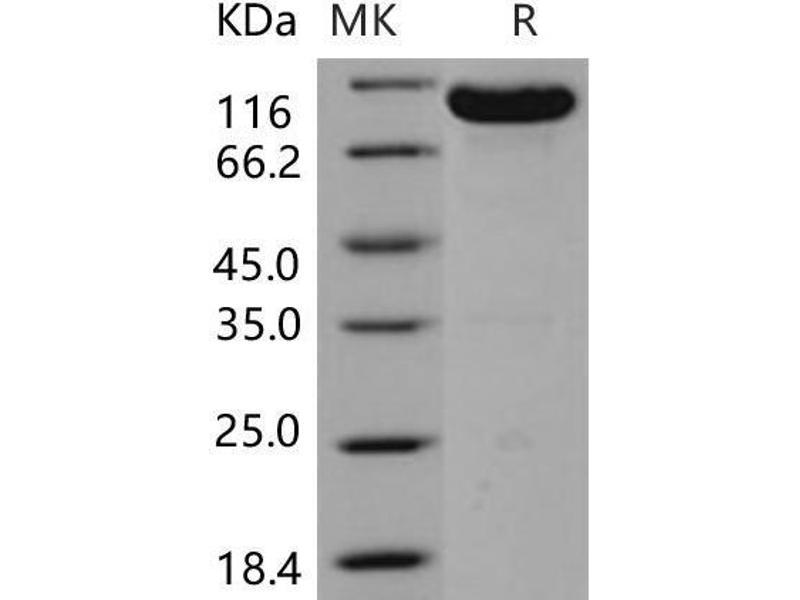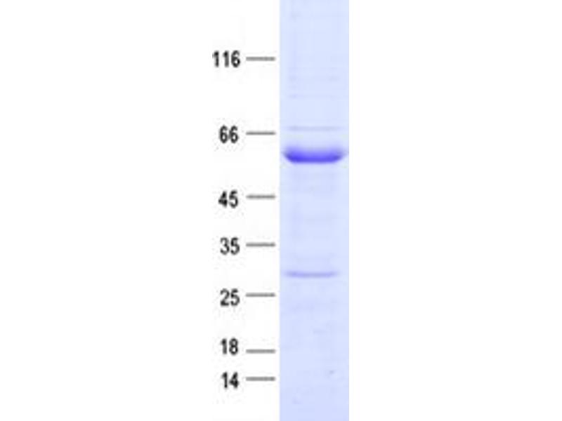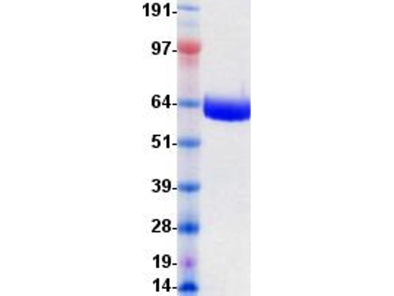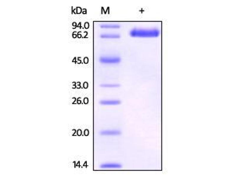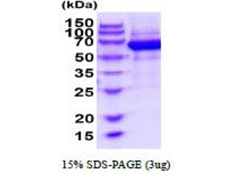 The purity of the protein is greater than 85 % as determined by SDS-PAGE and Coomassie blue staining.