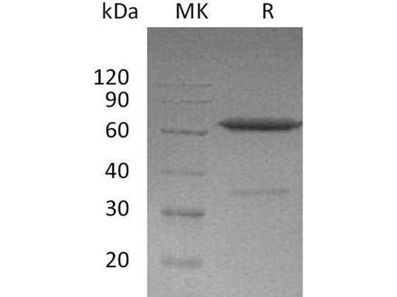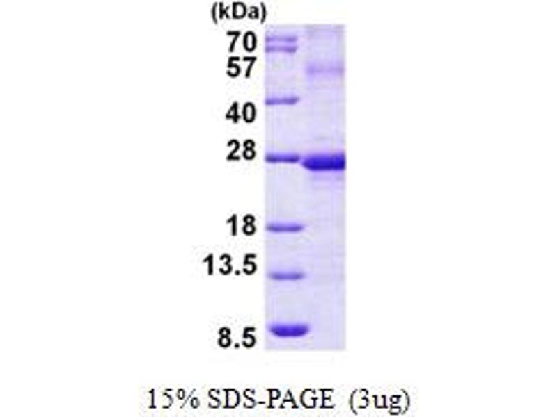 The purity of the protein is greater than 95 % as determined by SDS-PAGE and Coomassie blue staining.