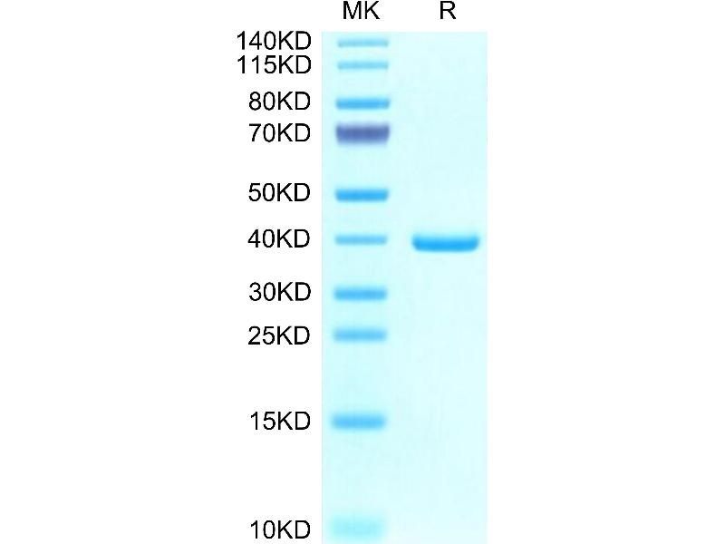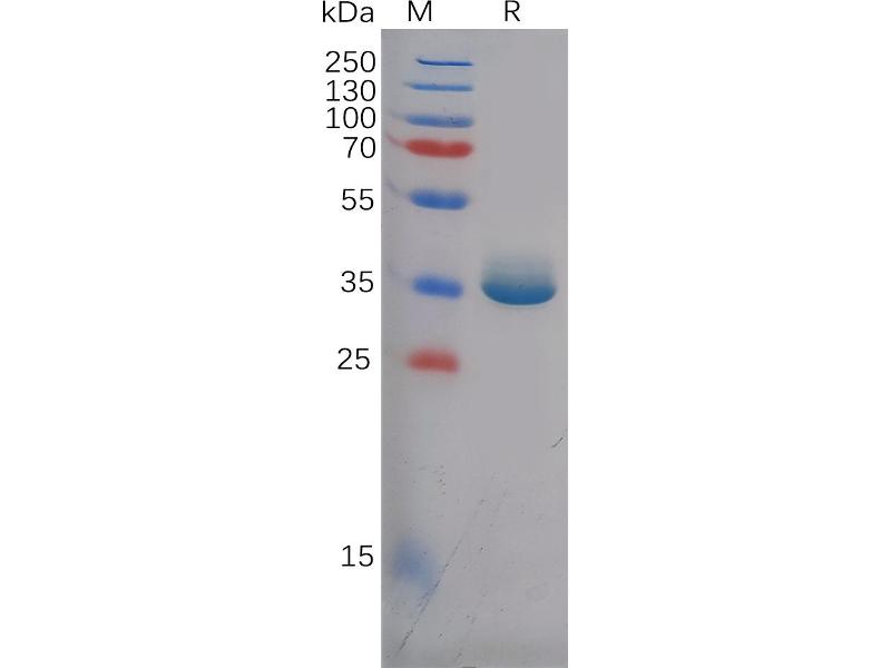 The purity of the protein is greater than 95 % as determined by SDS-PAGE and Coomassie blue staining.