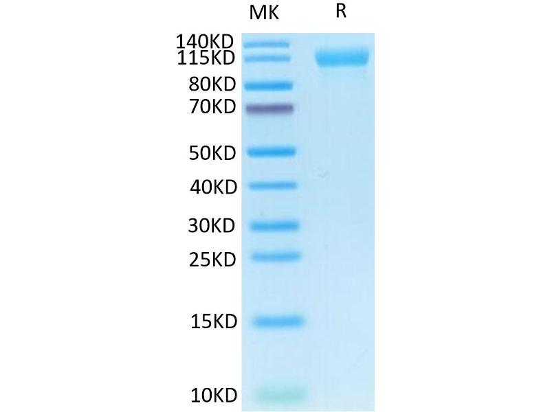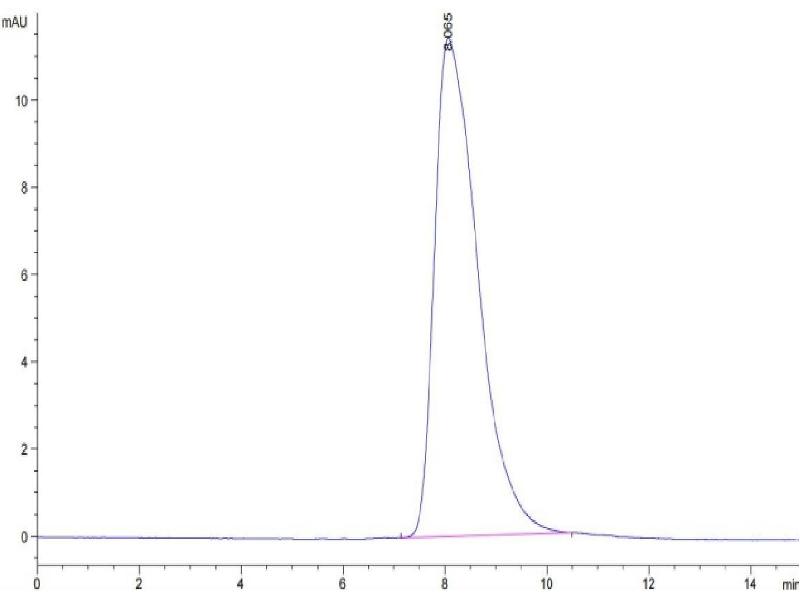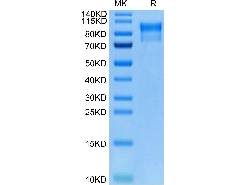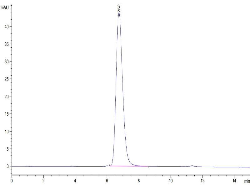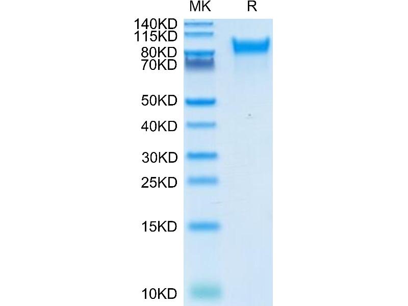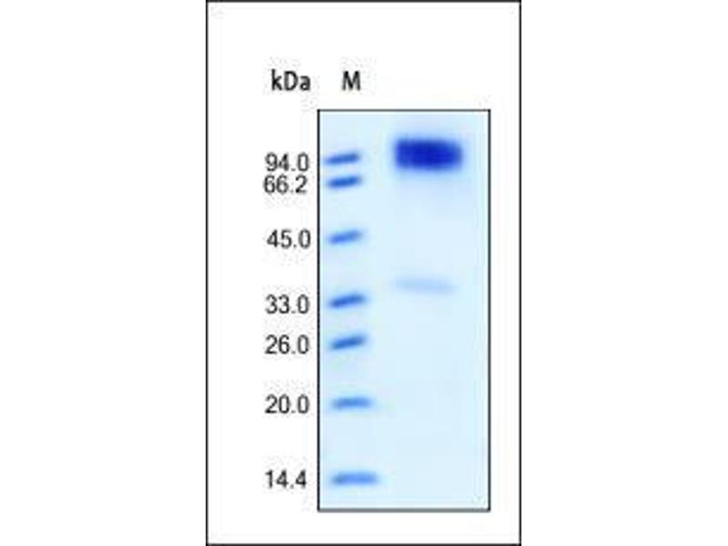 The purity of the protein is greater than 85 % as determined by SDS-PAGE and Coomassie blue staining.