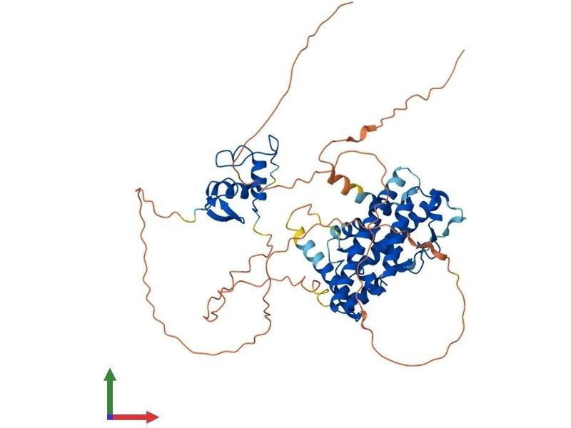 This gene encodes a member of the family of estrogen receptors and superfamily of nuclear receptor transcription factors. The gene product contains an N-terminal DNA binding domain and C-terminal ligand binding domain and is localized to the nucleus, cytoplasm, and mitochondria. Upon binding to 17beta-estradiol or related ligands, the encoded protein forms homo- or hetero-dimers that interact with specific DNA sequences to activate transcription. Some isoforms dominantly inhibit the activity of other estrogen receptor family members. Several alternatively spliced transcript variants of this gene have been described, but the full-length nature of some of these variants has not been fully characterized. [provided by RefSeq, Jul 2008].