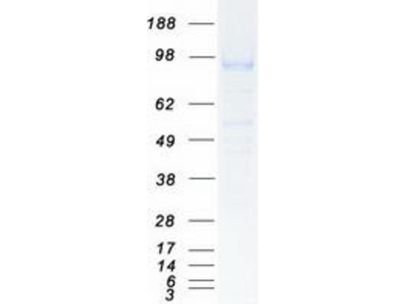 The purity of the protein is greater than 85 % as determined by SDS-PAGE and Coomassie blue staining.