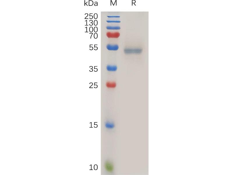 FASL Spezies: Human Wirt: HEK-293 Cells Recombinant The purity of the protein is greater than 95 % as determined by SDS-PAGE and Coomassie blue staining.