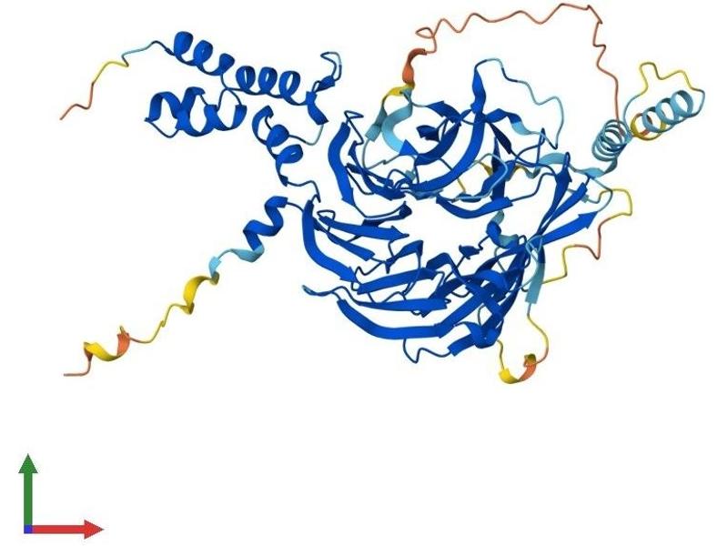 This gene encodes a member of the F-box protein family, members of which are characterized by an approximately 40 amino acid motif, the F-box. The F-box proteins constitute one of the four subunits of ubiquitin protein ligase complex called SCFs (SKP1-cullin-F-box), which function in phosphorylation-dependent ubiquitination. The F-box proteins are divided into three classes: Fbws containing WD-40 domains, Fbls containing leucine-rich repeats, and Fbxs containing either different protein-protein interaction modules or no recognizable motifs. The protein encoded by this gene contains WD-40 domains, in addition to an F-box motif, so it belongs to the Fbw class. Alternatively spliced transcript variants encoding distinct isoforms have been identified for this gene, however, they were found to be nonsense-mediated mRNA decay (NMD) candidates, hence not represented. [provided by RefSeq, Jul 2008].