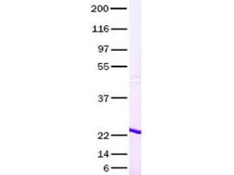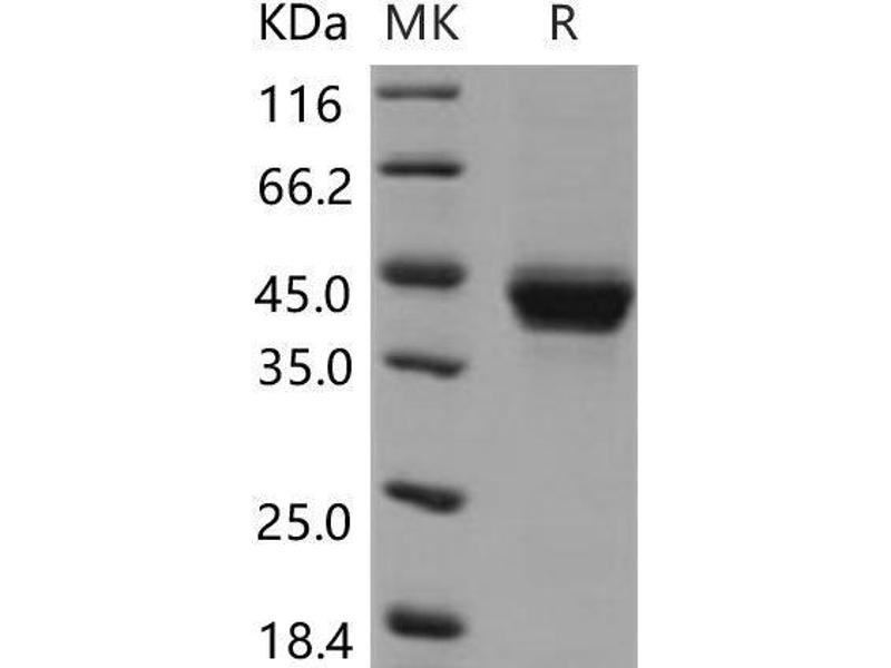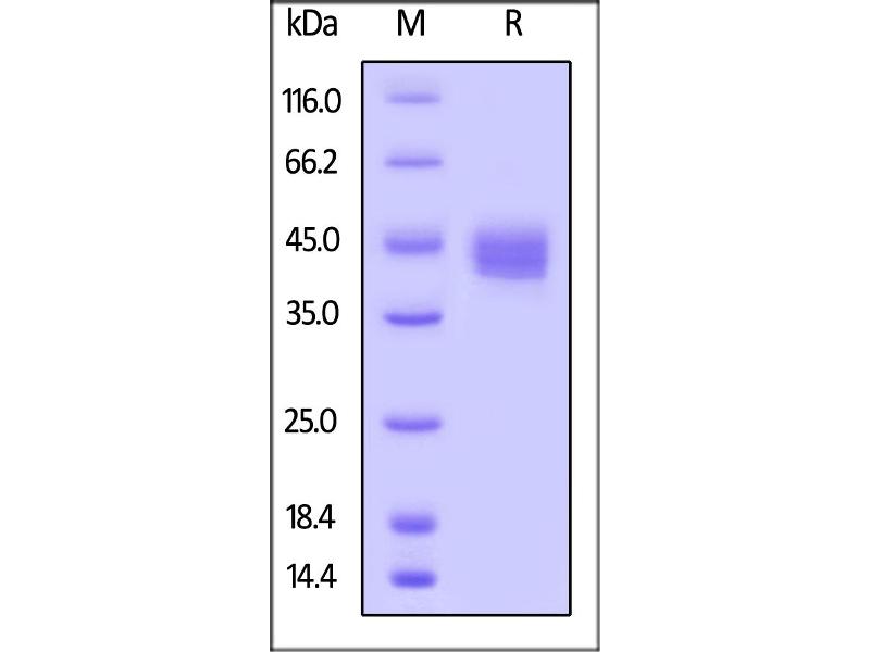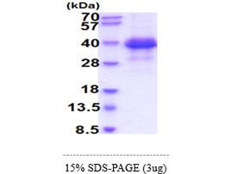 The purity of the protein is greater than 85 % as determined by SDS-PAGE and Coomassie blue staining.
