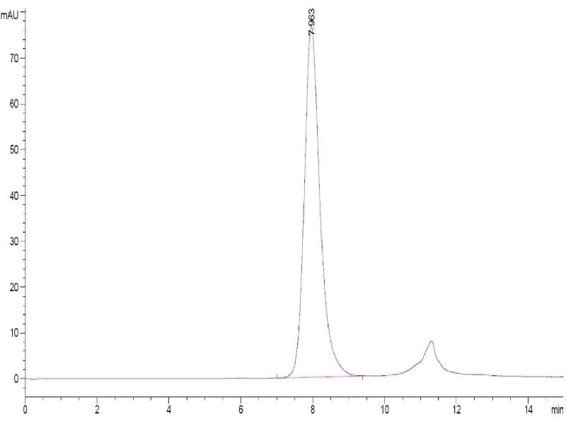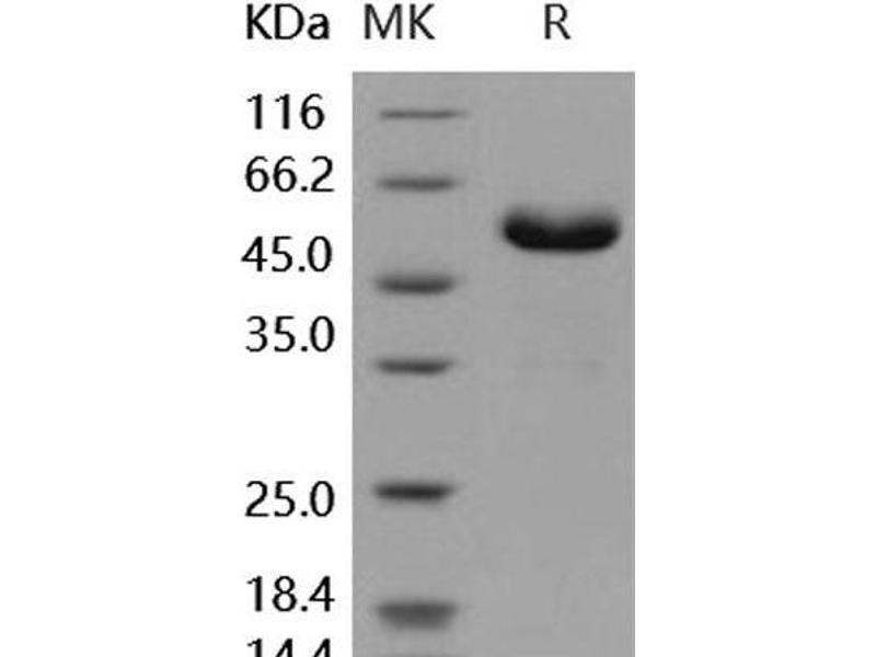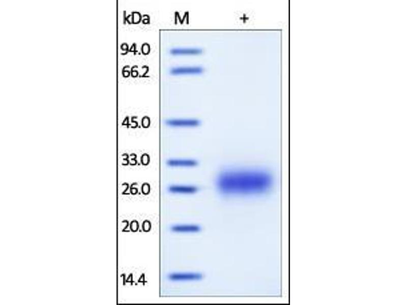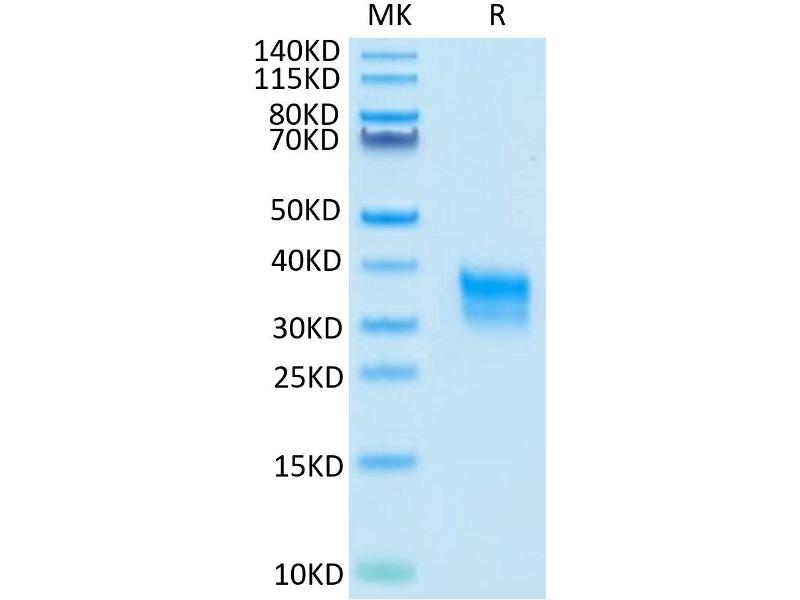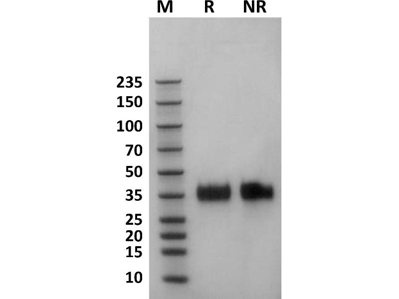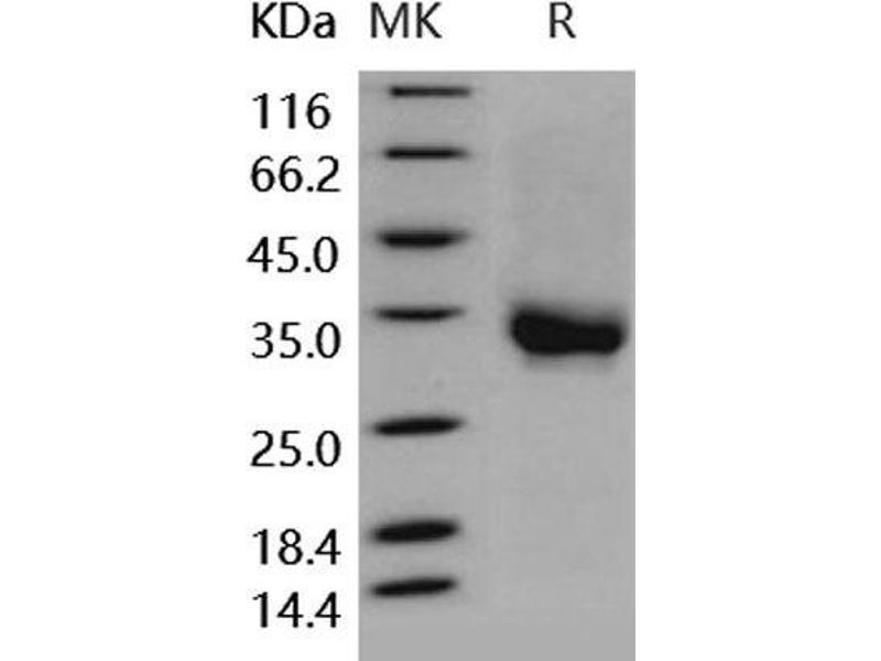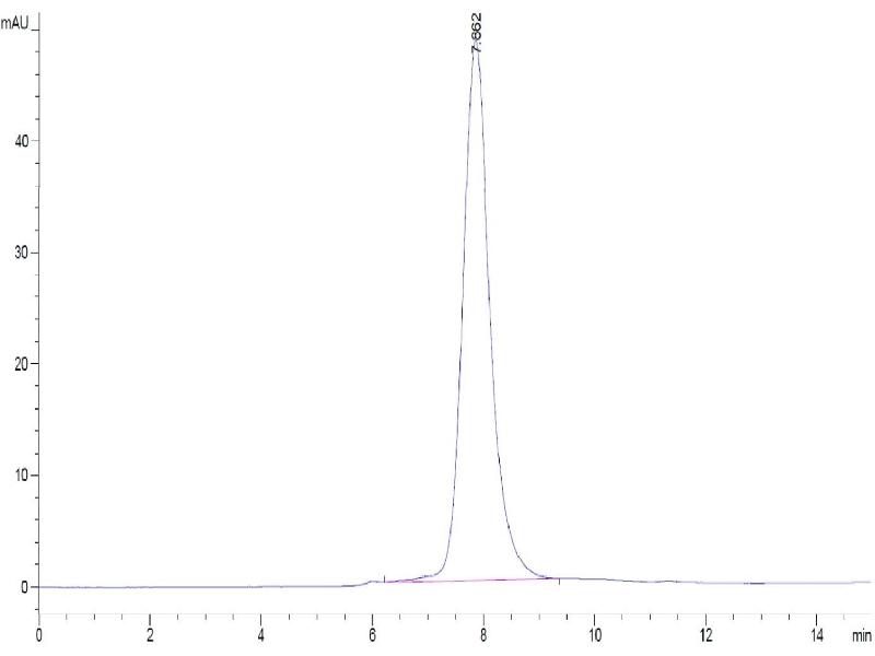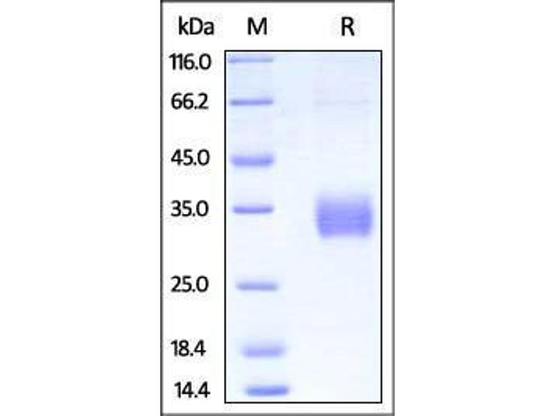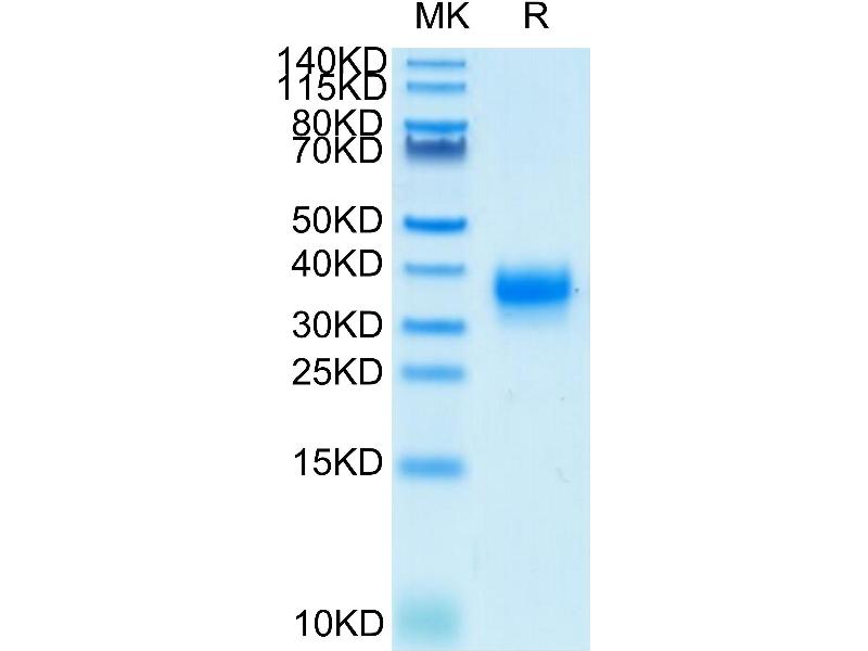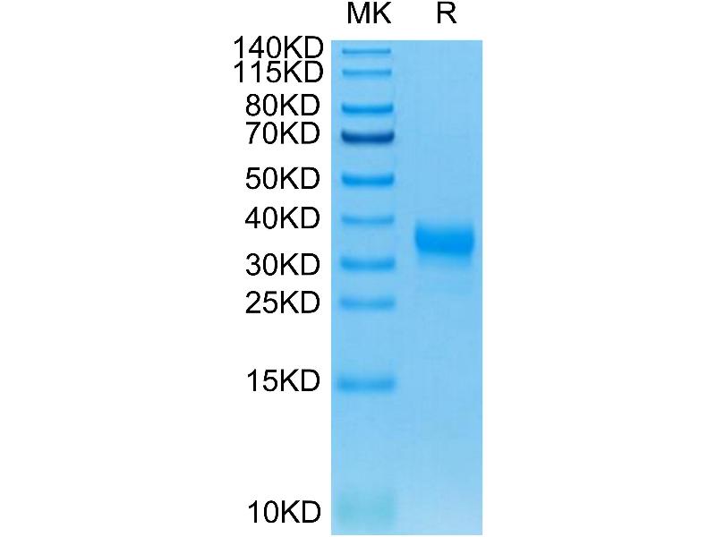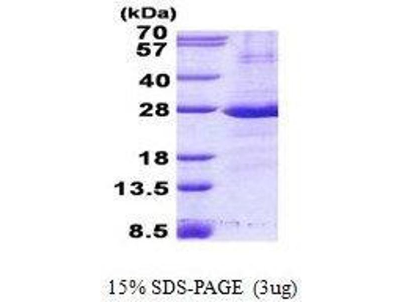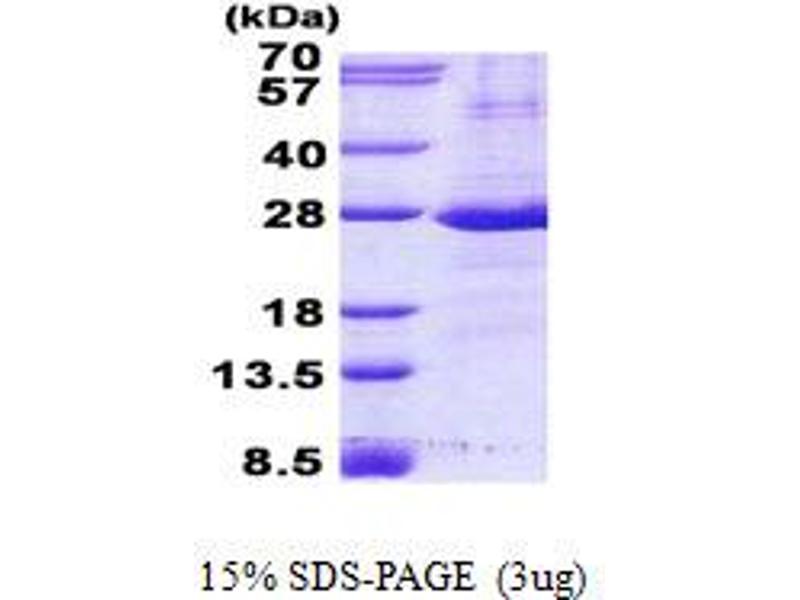 The purity of the protein is greater than 95 % as determined by SDS-PAGE and Coomassie blue staining.