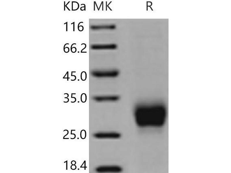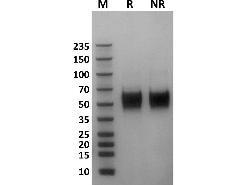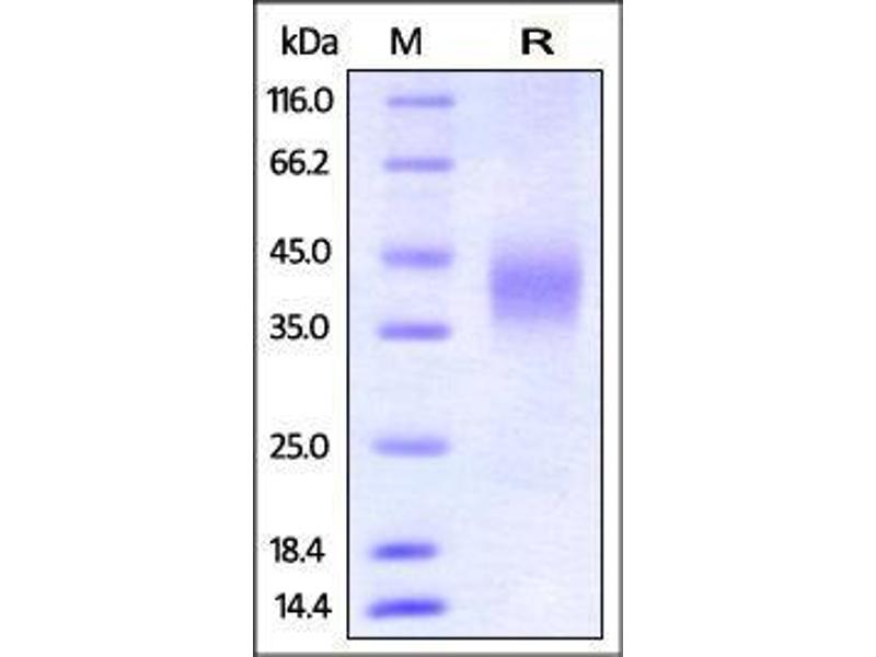 The purity of the protein is greater than 95 % as determined by SDS-PAGE and Coomassie blue staining.