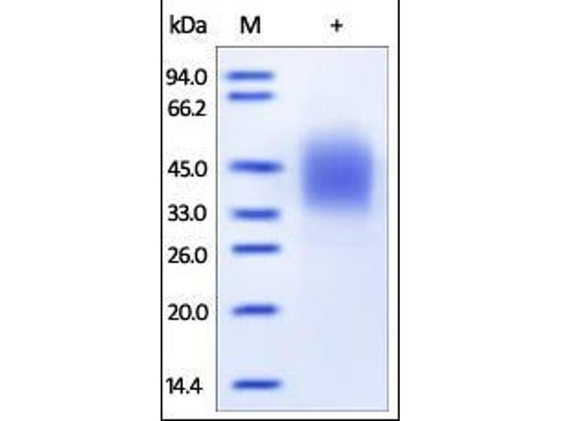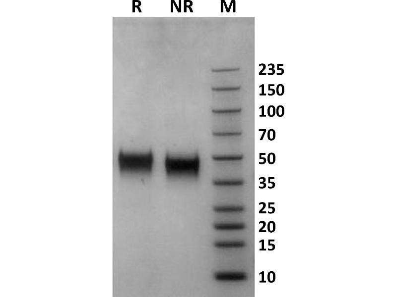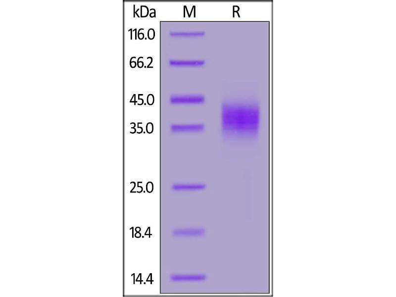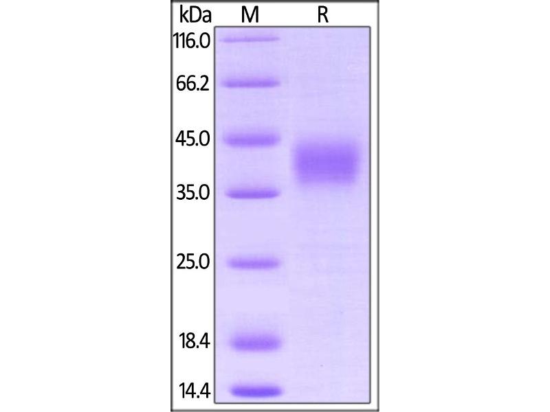 The purity of the protein is greater than 95 % as determined by SDS-PAGE and Coomassie blue staining.