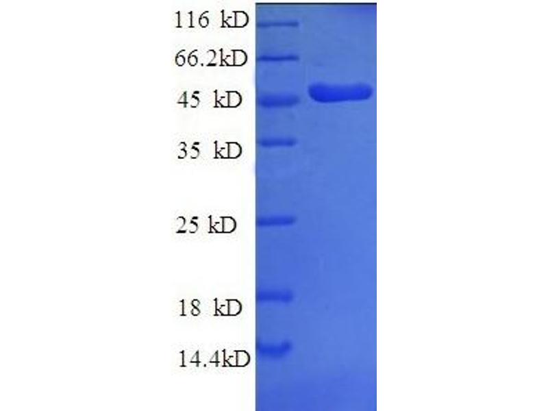 The purity of the protein is greater than 95 % as determined by SDS-PAGE and Coomassie blue staining.