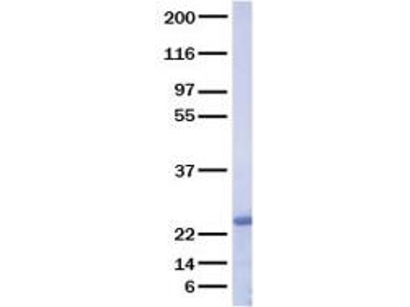 >97 % , as determined by Coomassie stained SDS-PAGE gel and HLPC analysis.