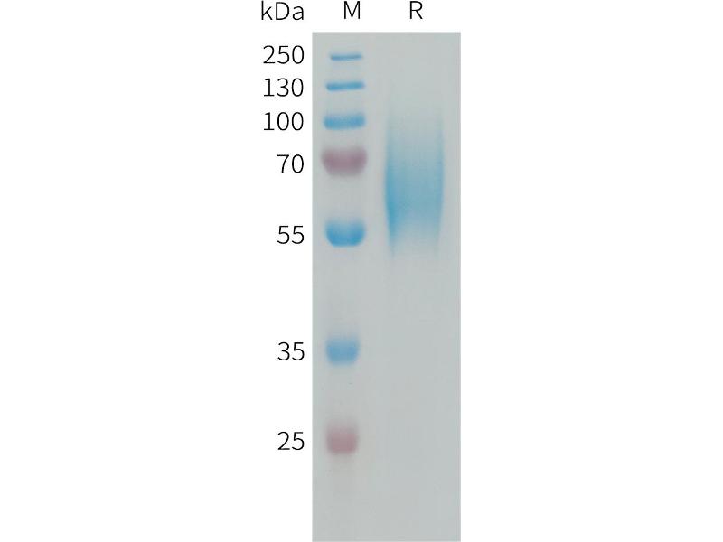 The purity of the protein is greater than 95 % as determined by SDS-PAGE and Coomassie blue staining.