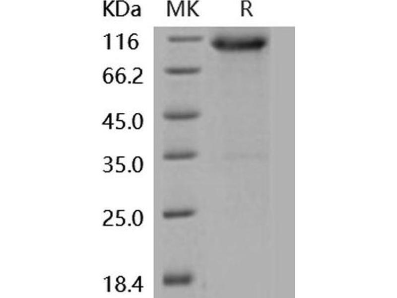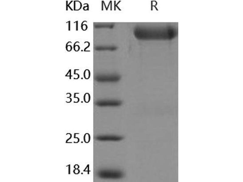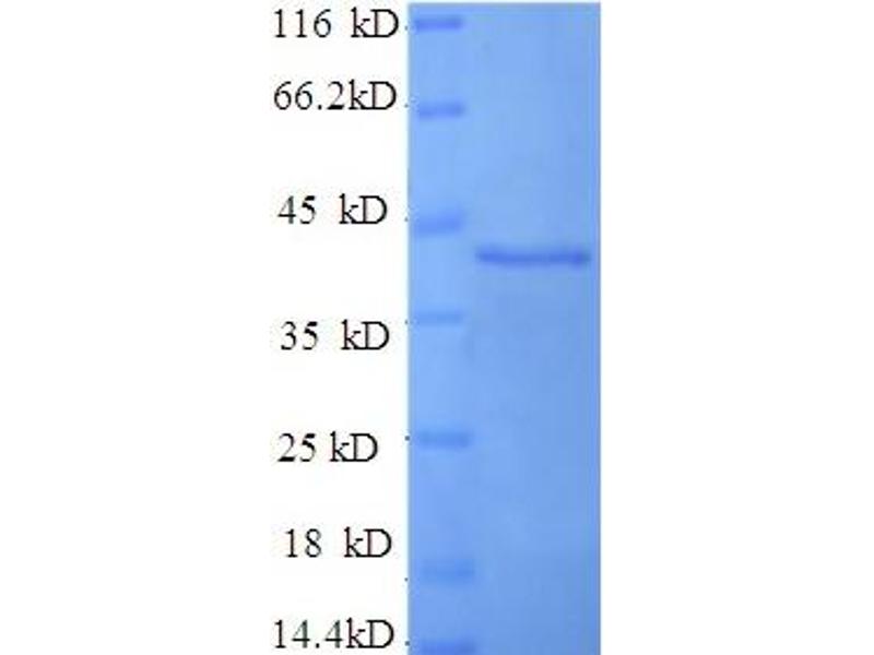 The purity of the protein is greater than 85 % as determined by SDS-PAGE and Coomassie blue staining.