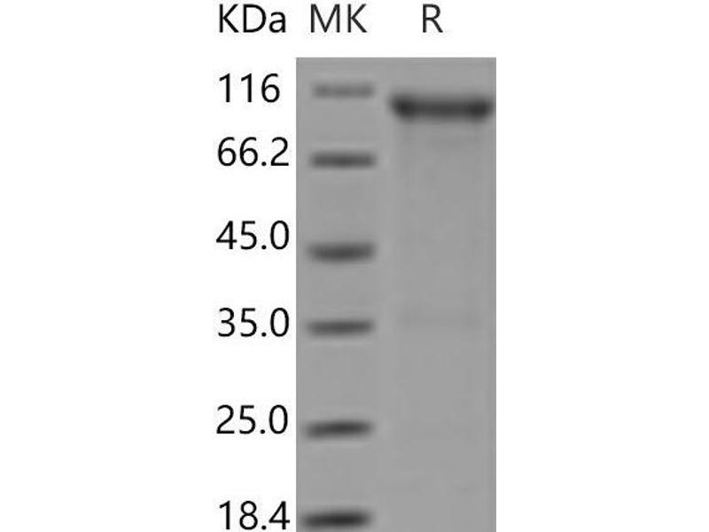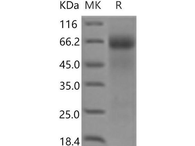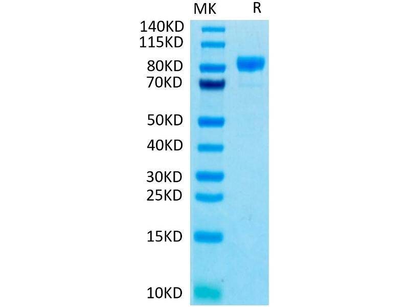 The purity of the protein is greater than 90 % as determined by SDS-PAGE and Coomassie blue staining.