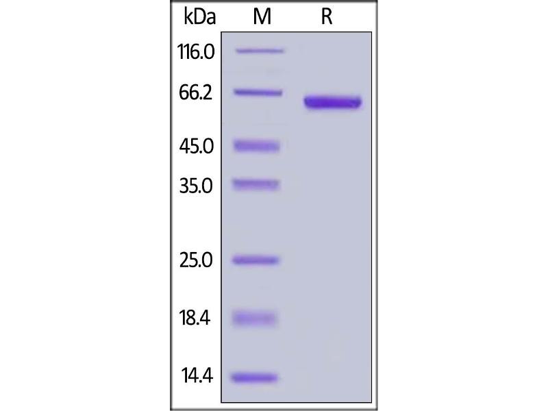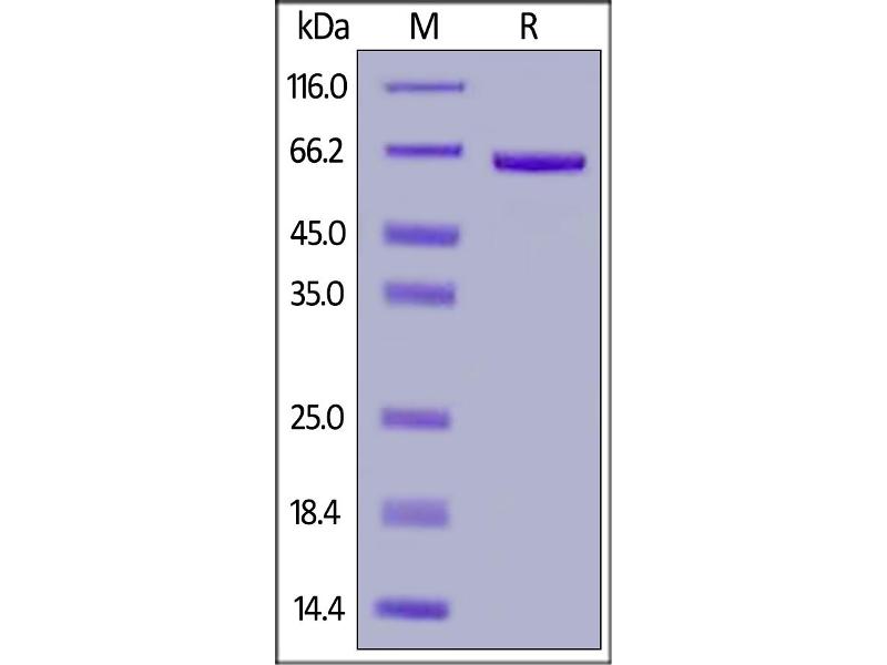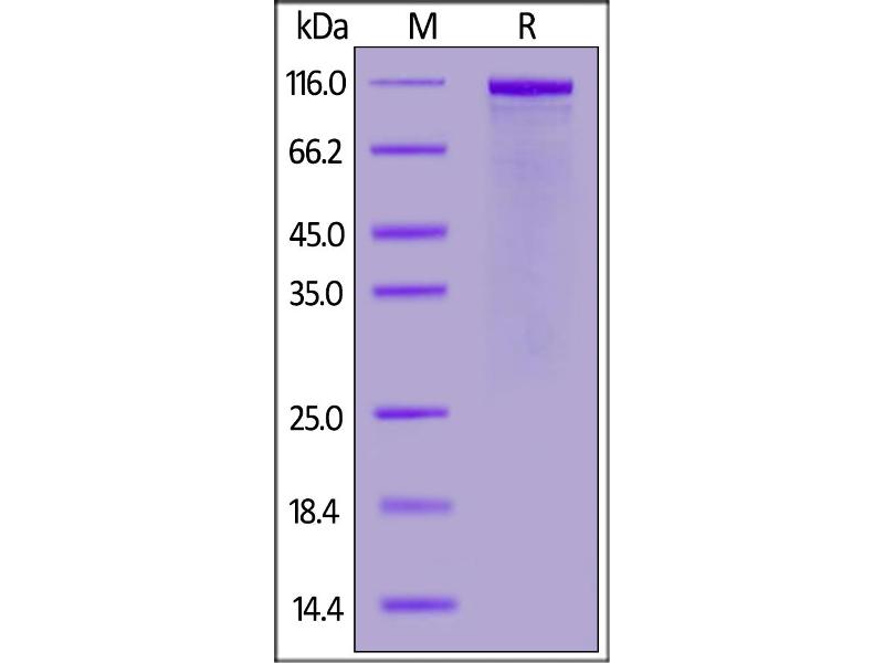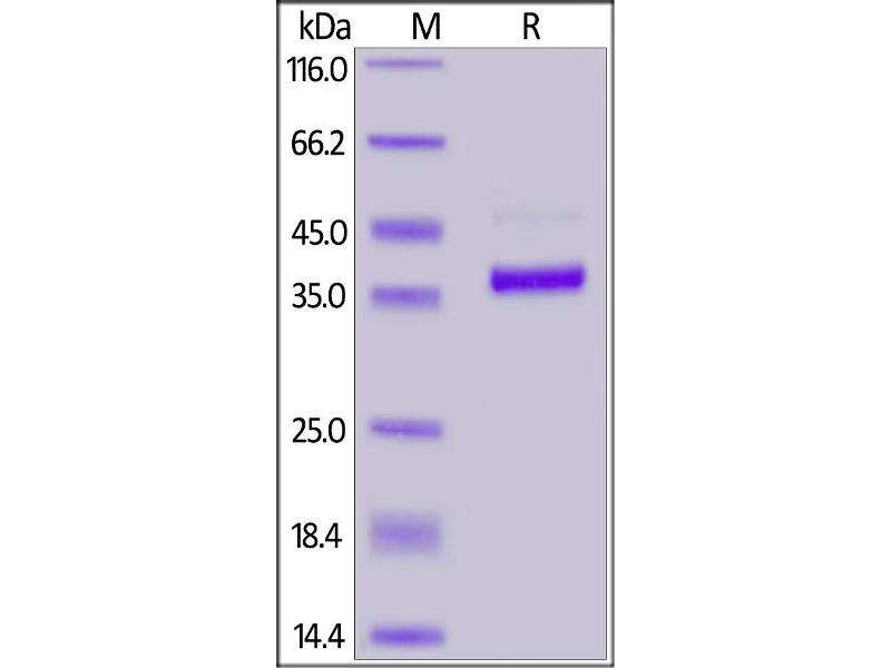 The purity of the protein is greater than 95 % as determined by SDS-PAGE and Coomassie blue staining.