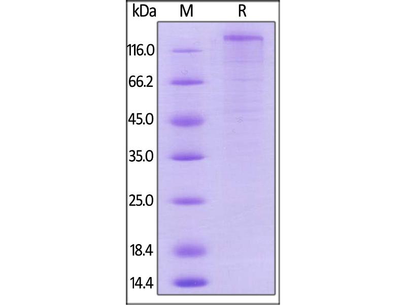 The purity of the protein is greater than 95 % as determined by SDS-PAGE and Coomassie blue staining.