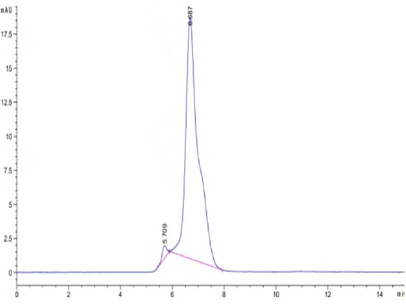 The purity of the protein is greater than 95 % as determined by SDS-PAGE and Coomassie blue staining.