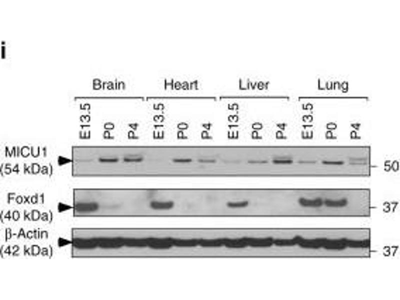 : "FOXD1-dependent MICU1 expression regulates mitochondrial activity and cell differentiation." in: Nature communications, Vol. 9, Issue 1, pp. 3449, (2018) (PubMed).: "Characterization of the human forkhead gene FREAC-4. Evidence for regulation by Wilms' tumor suppressor gene (WT-1) and p53." in: The Journal of biological chemistry, Vol. 271, Issue 35, pp. 21094-9, (1996) (PubMed).