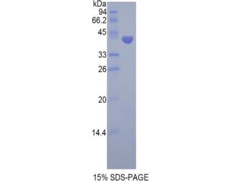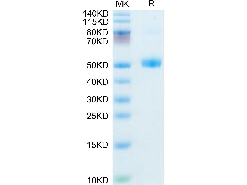 The purity of the protein is greater than 95 % as determined by SDS-PAGE and Coomassie blue staining.