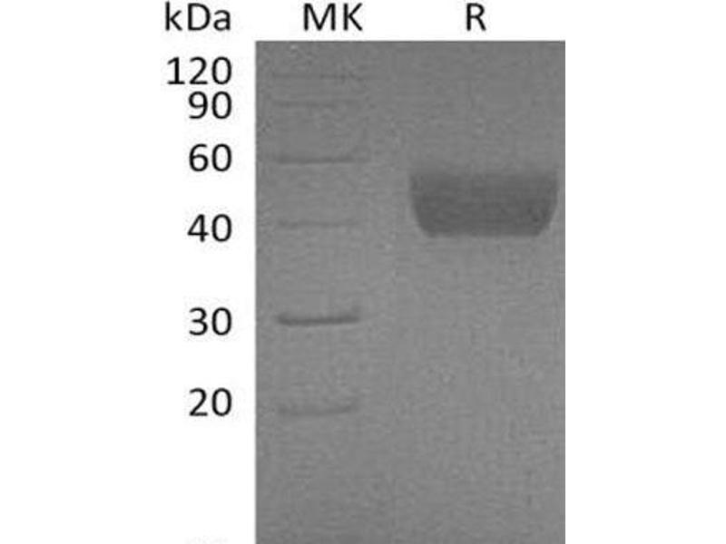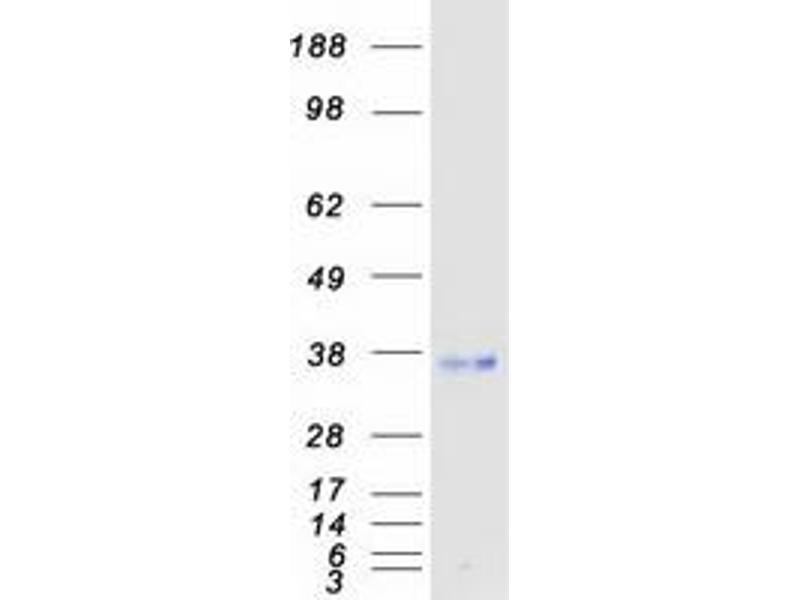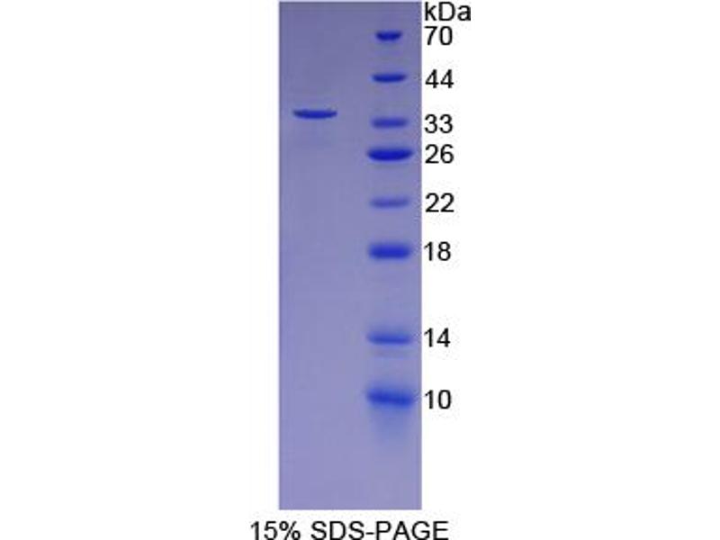 The purity of the protein is greater than 85 % as determined by SDS-PAGE and Coomassie blue staining.