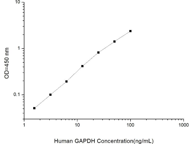 GAPDH Reaktivität: Human Colorimetric Sandwich ELISA 1.56 ng/mL - 100 ng/mL Cell Culture Supernatant, Cell Lysate, Tissue Homogenate