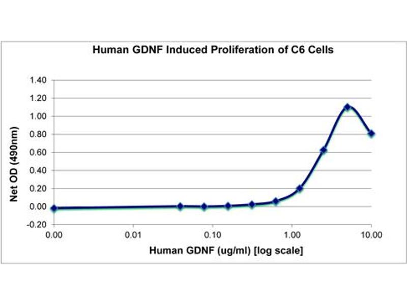 This gene encodes a highly conserved neurotrophic factor. The recombinant form of this protein was shown to promote the survival and differentiation of dopaminergic neurons in culture, and was able to prevent apoptosis of motor neurons induced by axotomy. The encoded protein is processed to a mature secreted form that exists as a homodimer. The mature form of the protein is a ligand for the product of the RET (rearranged during transfection) protooncogene. Multiple transcript variants encoding different isoforms have been found for this gene. Mutations in this gene may be associated with Hirschsprung disease. [provided by RefSeq, Jun 2010].