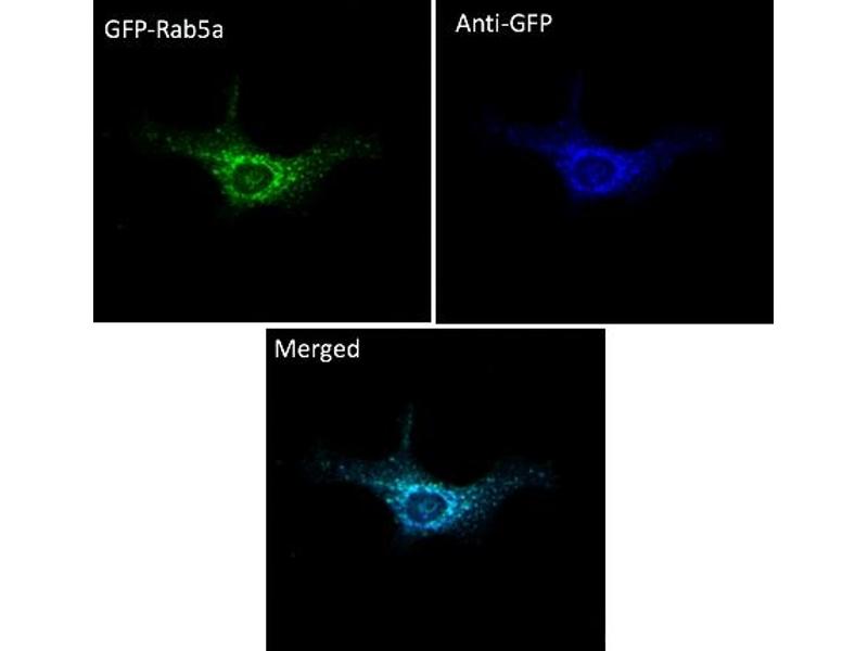 • Immunofluorescence and microscopy: GFP antibodies are utilized in immunofluorescence experiments to visualize and localize GFP-tagged proteins within fixed cells or tissues. By using secondary antibodies conjugated to fluorophores, such as Alexa Fluor or DyLight dyes, the GFP antibodies can be detected and visualized under a fluorescence microscope. This technique enables researchers to study protein localization, interactions, and dynamics in real-time.