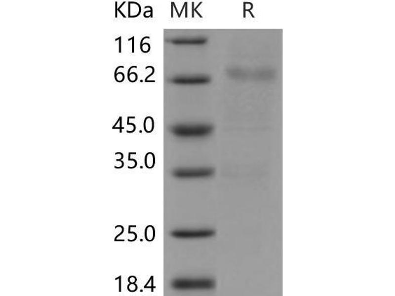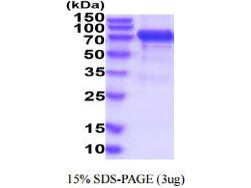 The purity of the protein is greater than 85 % as determined by SDS-PAGE and Coomassie blue staining.
