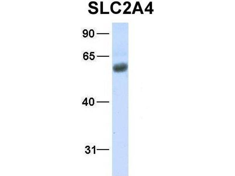 SLC2A4 Reaktivität: Human, Maus, Ratte, Kaninchen, Rind (Kuh), Ziege, Pferd, Hund, Meerschweinchen, Zebrafisch (Danio rerio) WB Wirt: Kaninchen Polyclonal unconjugated