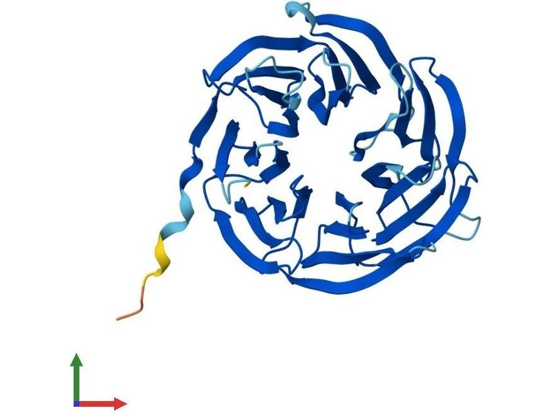 This gene encodes a G-protein beta-subunit-like polypeptide which is a member of the WD repeat protein family. WD repeats are minimally conserved regions of approximately 40 amino acids typically bracketed by gly-his and trp-asp (GH-WD), which may facilitate formation of heterotrimeric or multiprotein complexes. Members of this family are involved in a variety of cellular processes, including cell cycle progression, signal transduction, apoptosis, and gene regulation. This protein contains 6 WD repeats and is highly expressed in the heart. The gene maps to the region on chromosome 22q11, which is deleted in DiGeorge syndrome, trisomic in derivative 22 syndrome and tetrasomic in cat-eye syndrome. Therefore, this gene may contribute to the etiology of those disorders. Transcripts from this gene share exons with some transcripts from the C22orf29 gene. [provided by RefSeq, Jul 2008].