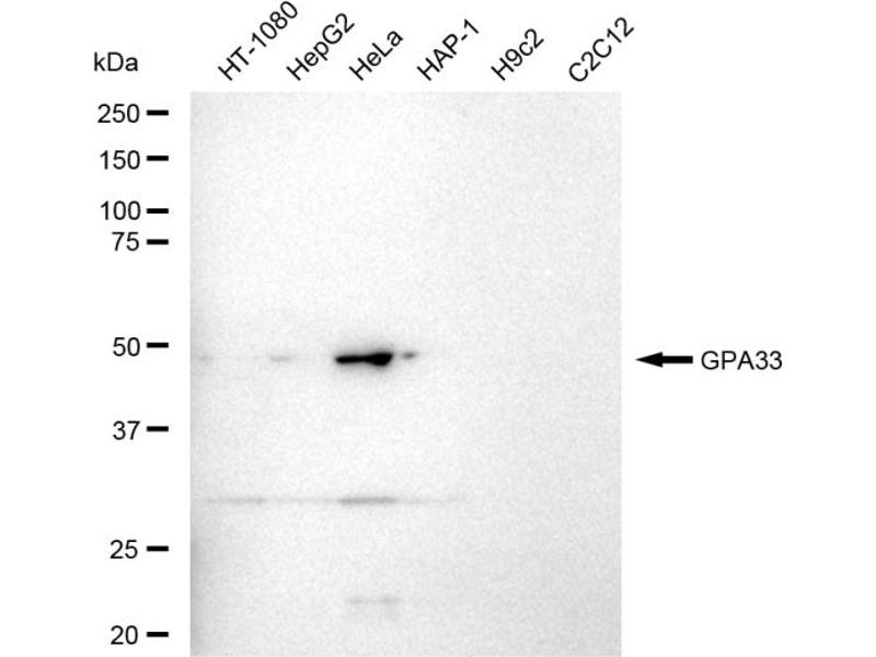 Entdecken Sie zuverlässige GPA33-Antikörper von einer großen Zahl namhafter Hersteller. Unser Portfolio ermöglicht eine präzise GPA33-Detektion in verschiedenen Spezies, darunter Human, Mouse, Rat, und unterstützt vielfältige Forschungsanwendungen wie WB, IHC, ELISA, IF (cc), IF (p).