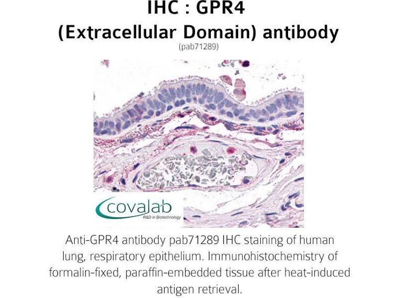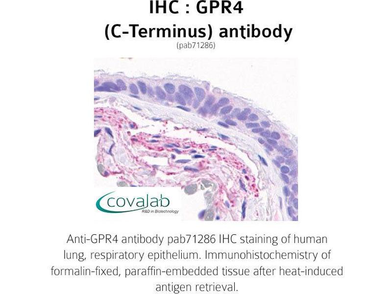 : "Cloning, sequencing and tissue distribution of two related G protein-coupled receptor candidates expressed prominently in human lung tissue." in: FEBS letters, Vol. 375, Issue 1-2, pp. 121-4, (1996) (PubMed).: "Isolation of a novel G protein-coupled receptor (GPR4) localized to chromosome 19q13.3." in: Genomics, Vol. 30, Issue 1, pp. 84-8, (1996) (PubMed).