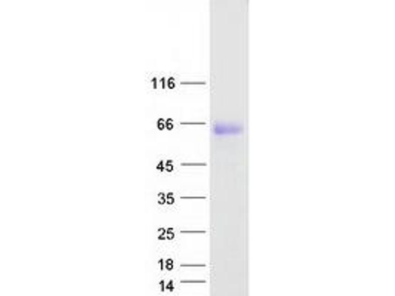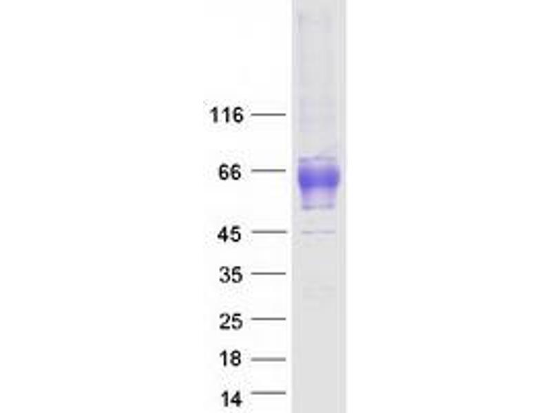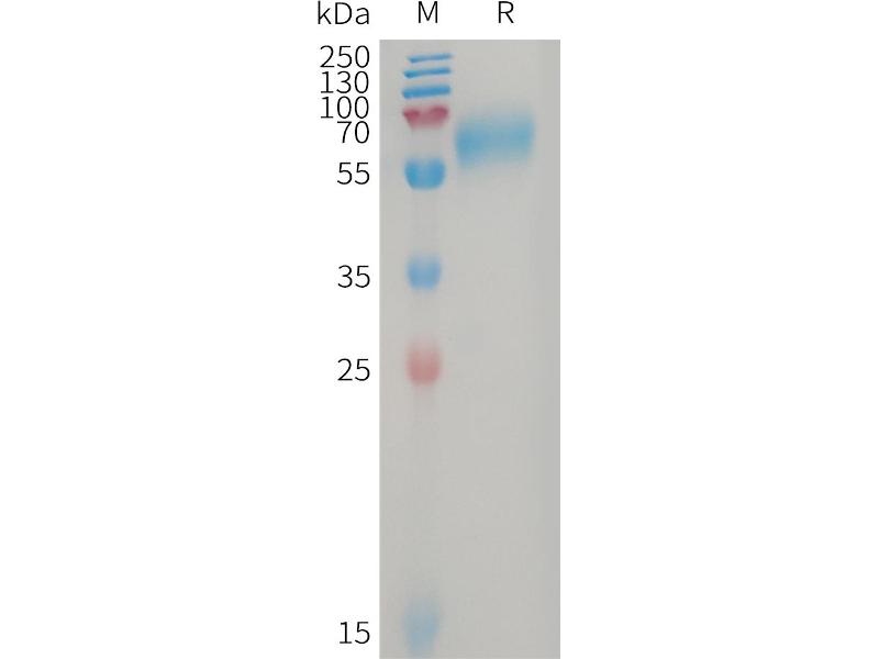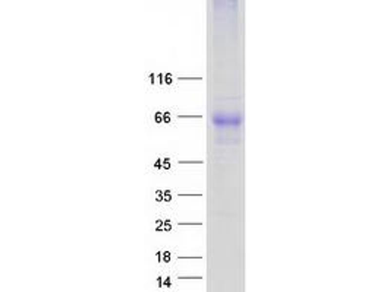 The purity of the protein is greater than 85 % as determined by SDS-PAGE and Coomassie blue staining.