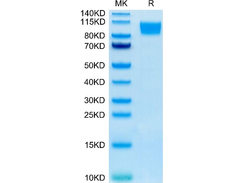 The purity of the protein is greater than 95 % as determined by SDS-PAGE and Coomassie blue staining.