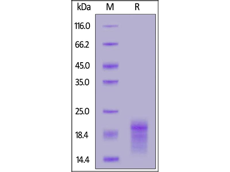 The purity of the protein is greater than 95 % as determined by SDS-PAGE and Coomassie blue staining.