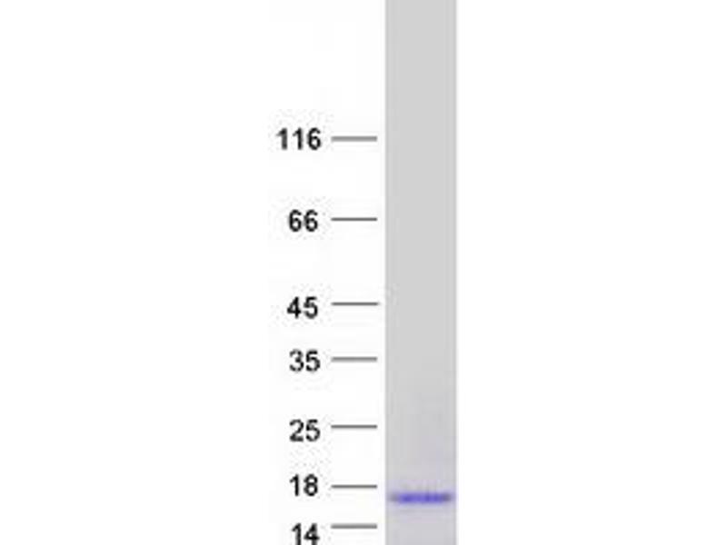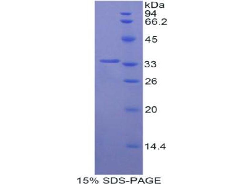 The purity of the protein is greater than 95 % as determined by SDS-PAGE and Coomassie blue staining.