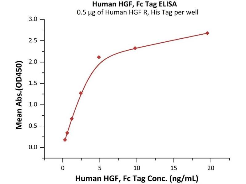 HGF Spezies: Human Wirt: HEK-293 Cells Recombinant The purity of the protein is greater than 95 % as determined by SDS-PAGE and Coomassie blue staining.