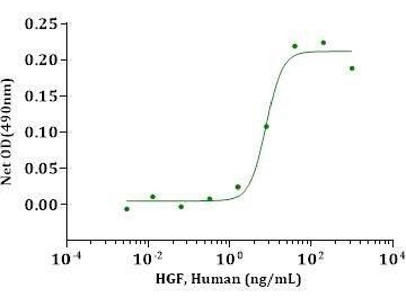 HGF Spezies: Human Wirt: HEK-293 Cells Recombinant The purity of the protein is greater than 90 % as determined by SDS-PAGE and Coomassie blue staining.