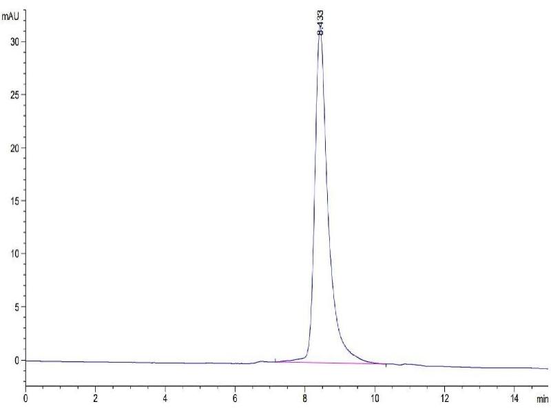 The purity of the protein is greater than 95 % as determined by SDS-PAGE and Coomassie blue staining.