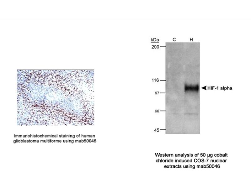 HIF1A Reaktivität: Human, Maus, Affe WB, IHC, ELISA, ICC Wirt: Maus Monoclonal 1A3 unconjugated