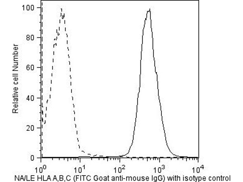 HLA-ABC Reaktivität: Human, Rind (Kuh), Pavian, Cynomolgus, Rhesusaffen, Makake, Spitzmaus, Schimpanse, Gorilla FACS, IP, IHC (fro), IF, ELISA, Func Wirt: Maus Monoclonal W6-32 unconjugated