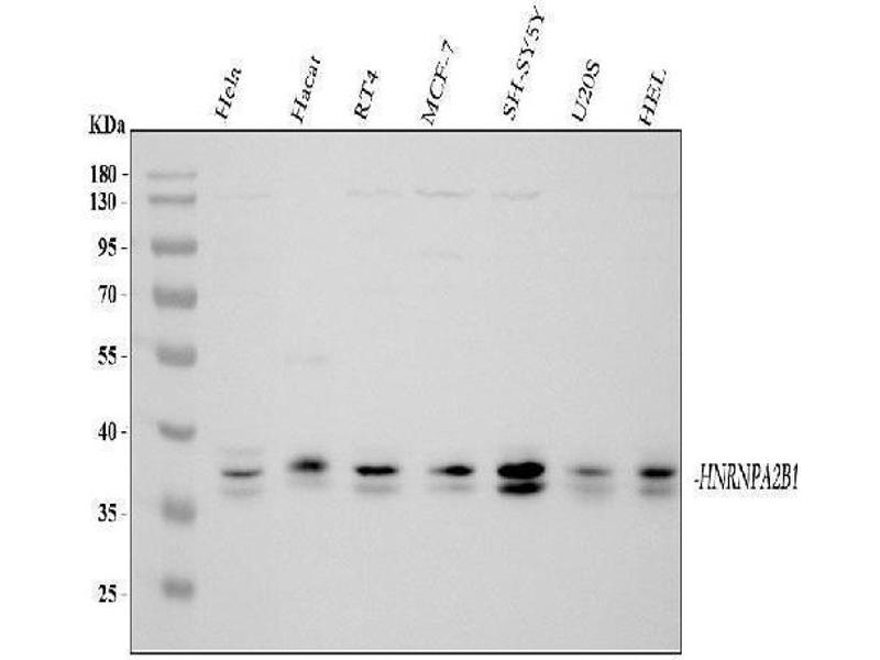 HNRNPA2B1 Reaktivität: Human, Maus, Ratte, Hund, Affe, Pferd, Kaninchen WB Wirt: Kaninchen Polyclonal unconjugated