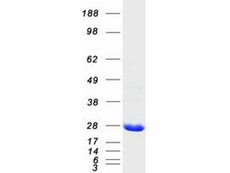 The purity of the protein is greater than 95 % as determined by SDS-PAGE and Coomassie blue staining.