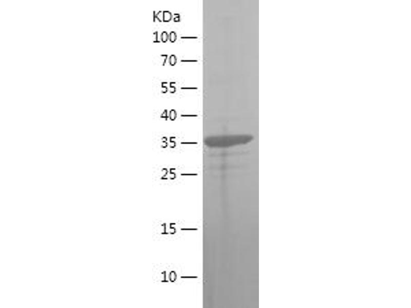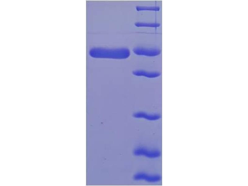 The purity of the protein is greater than 85 % as determined by SDS-PAGE and Coomassie blue staining.